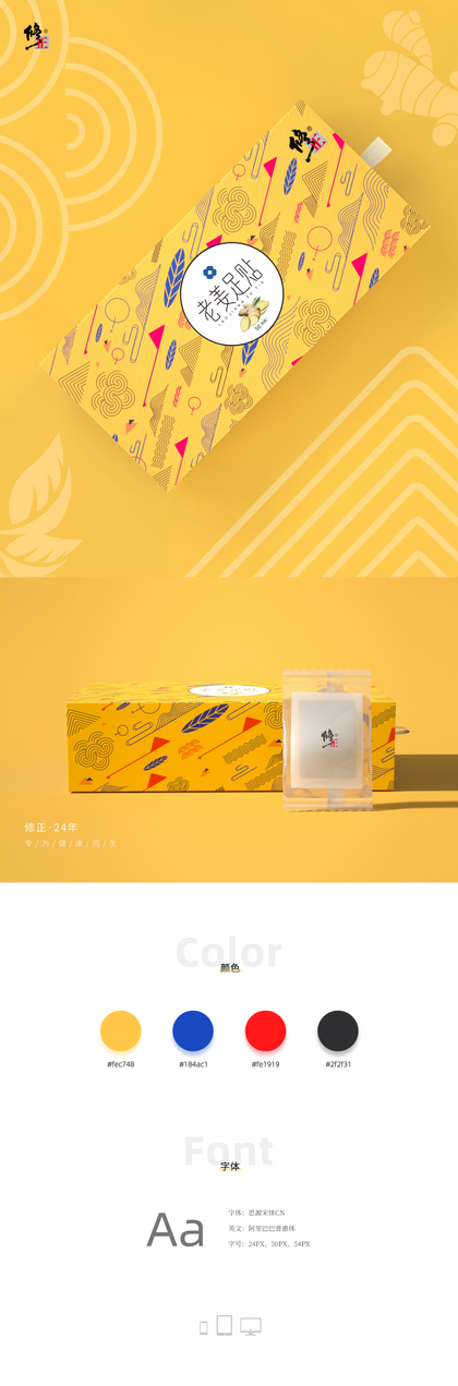 修正品牌老姜足贴视觉分享首页主图详情设计