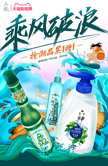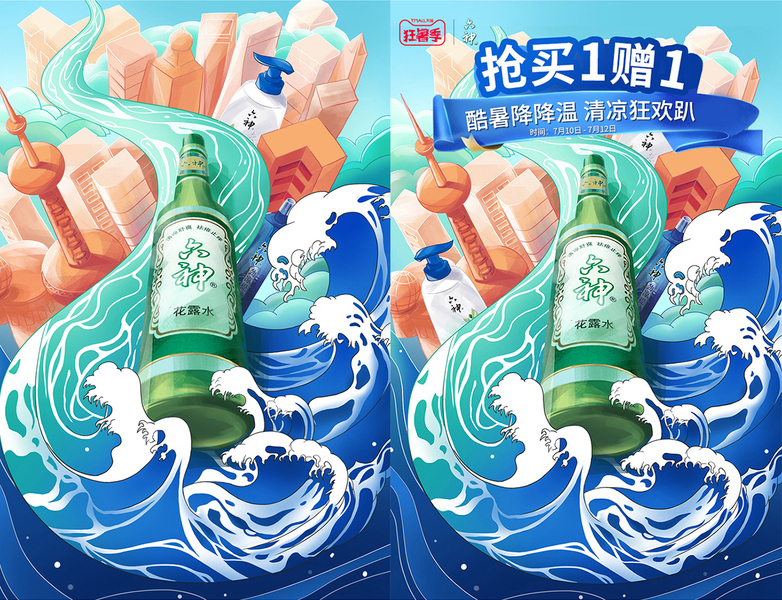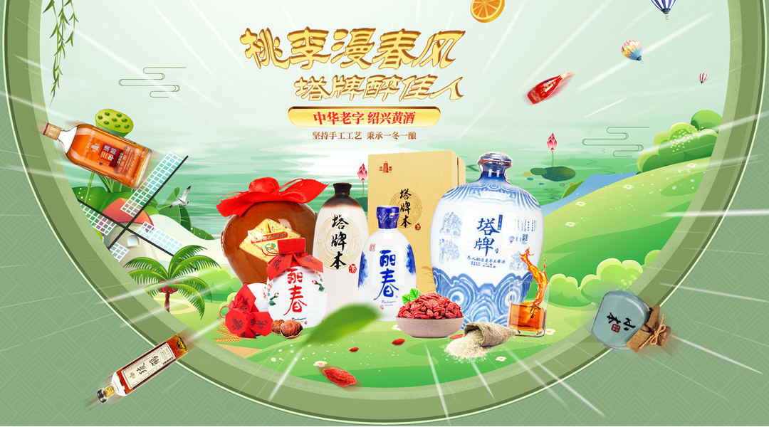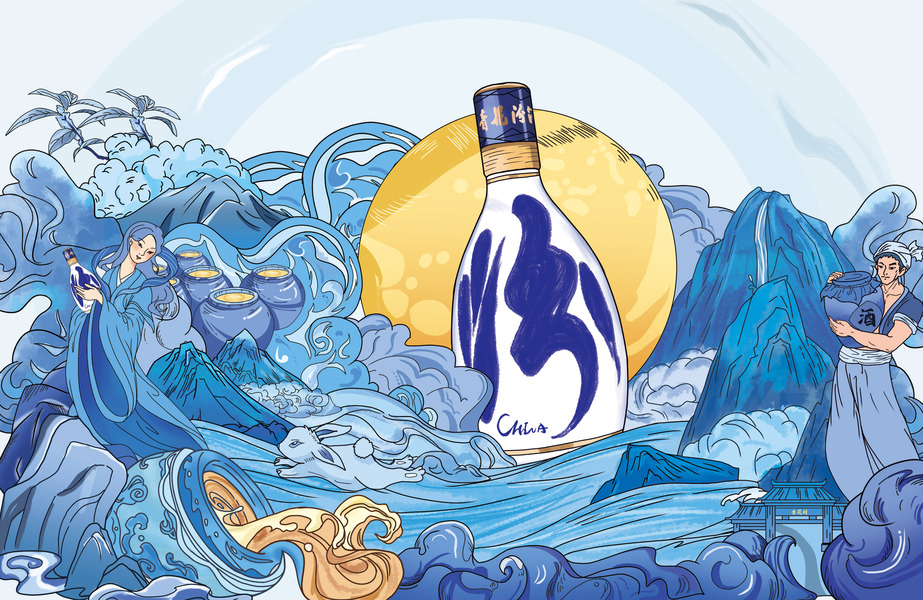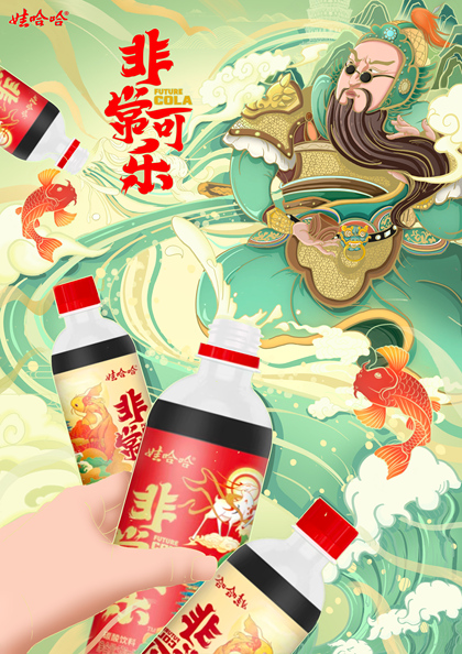 国潮插画海报岳喝越美味,贵妃也沉醉
