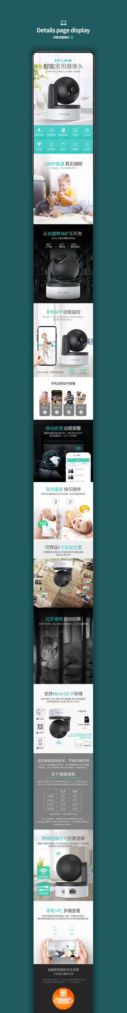 电商监控摄像头设备电子科技TPLINK详情页海报描述页