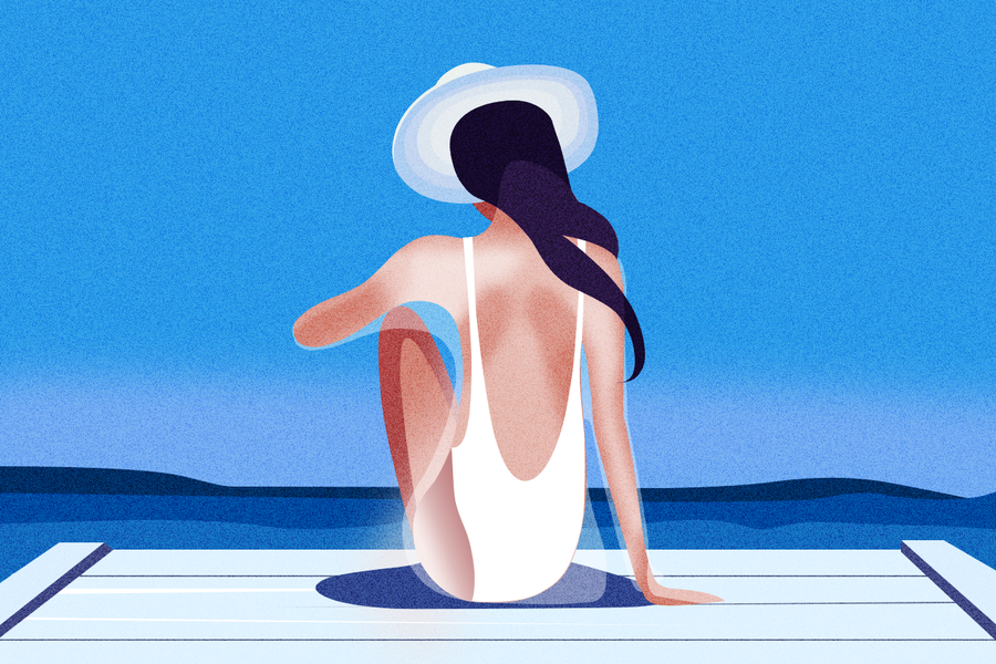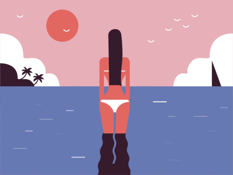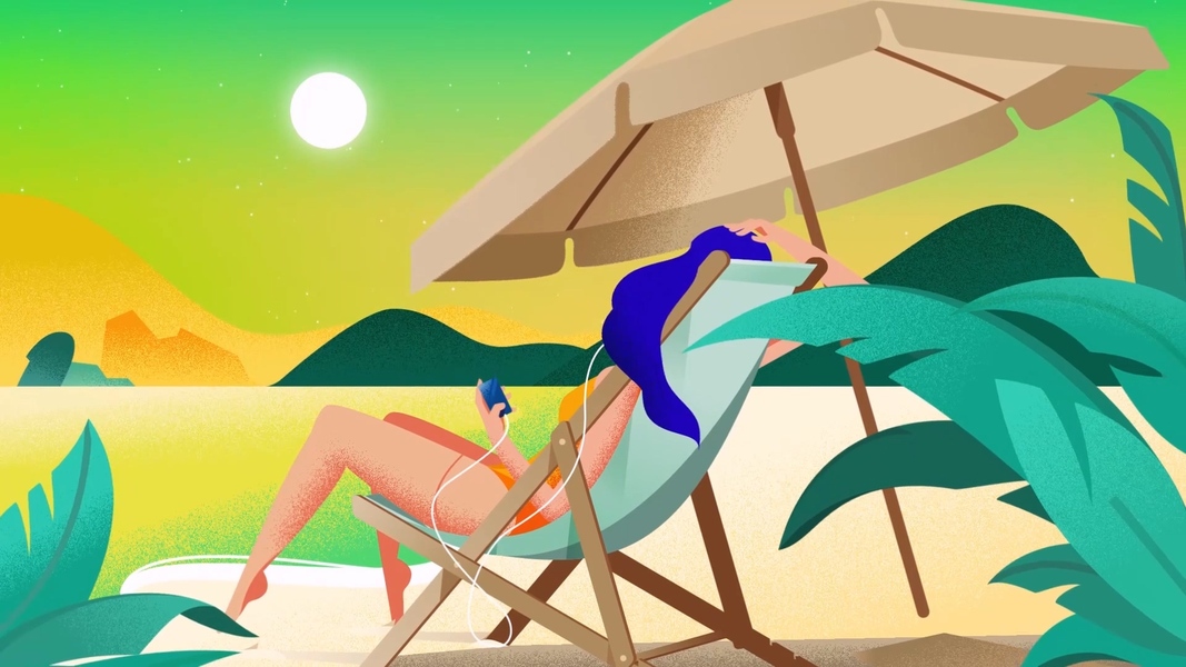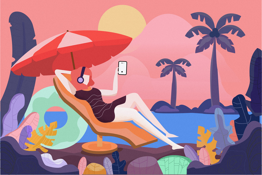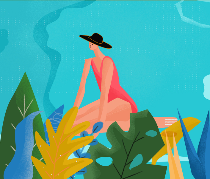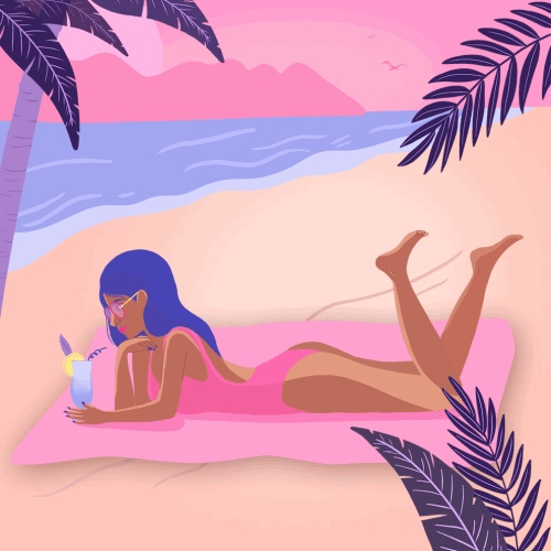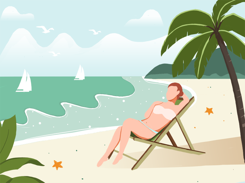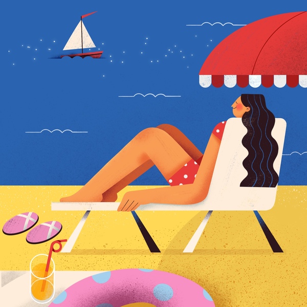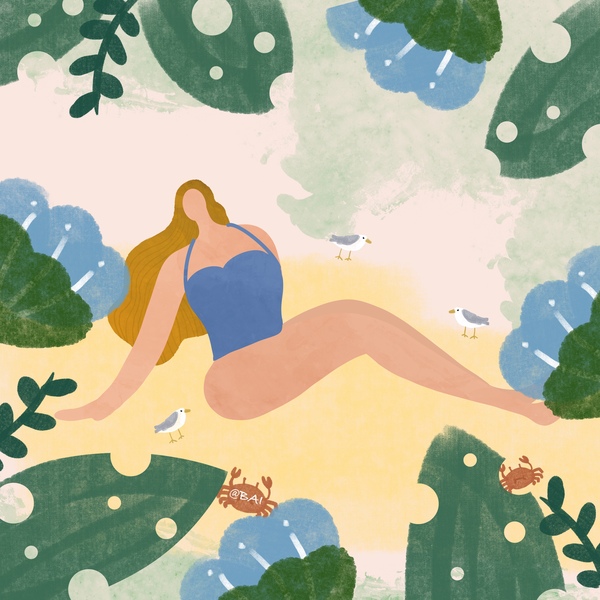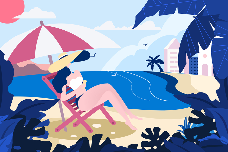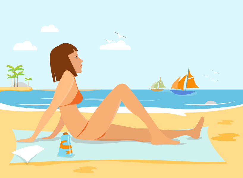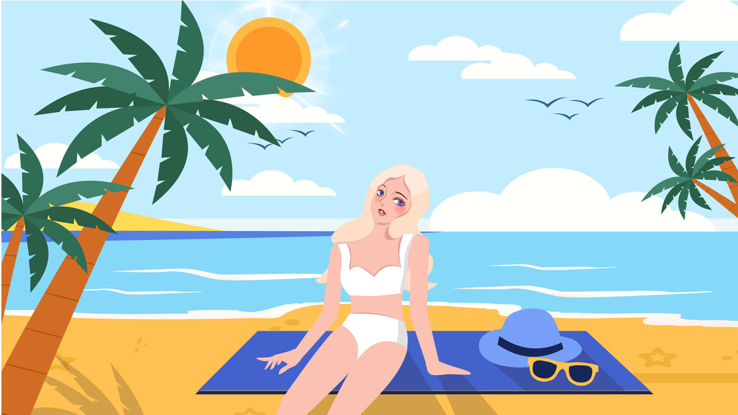 插画-夏季沙滩-扁平化-美女