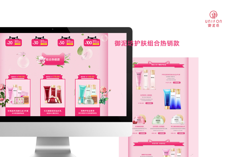 ANU蘑菇街双12化妆品首页设计首页海报banana