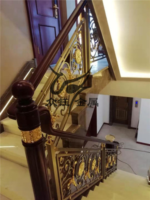 彭州纯铜楼梯护栏配搭红木扶手尽显高贵