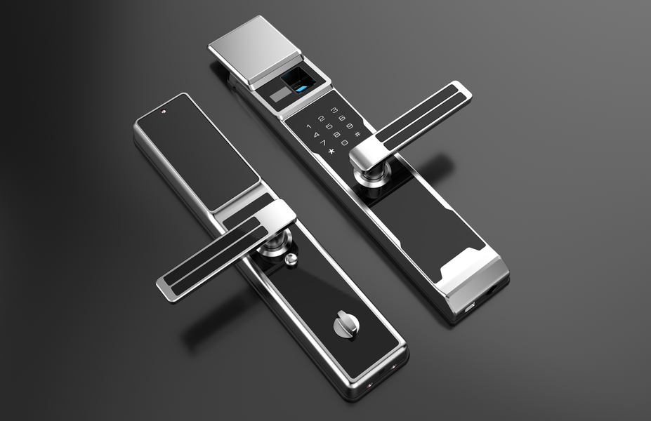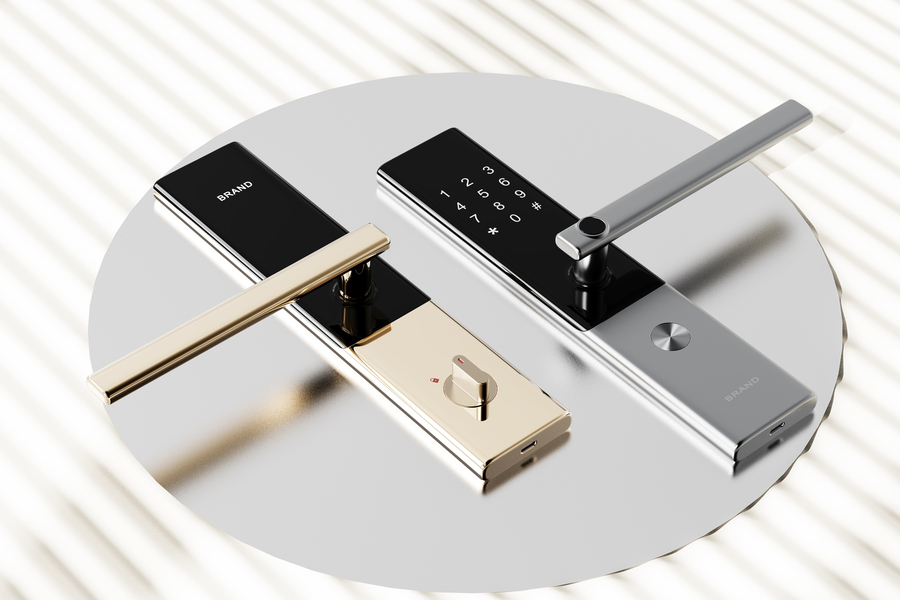 智能锁渲染 智能密码指纹锁 门锁 工业设计 3D渲染效果图