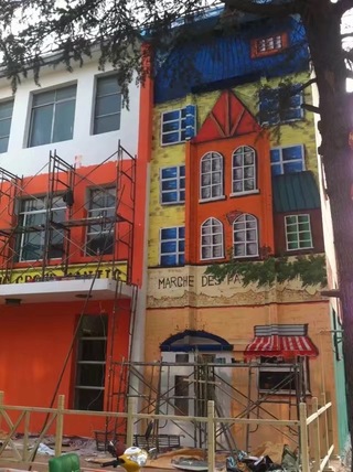 小镇旅社 创意3D画墙绘壁画设计绘制
