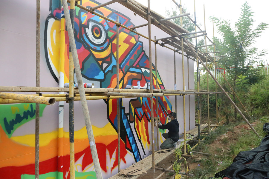 创意园区外墙涂鸦-商场涂鸦-外墙彩绘-墙绘设计-浮雕