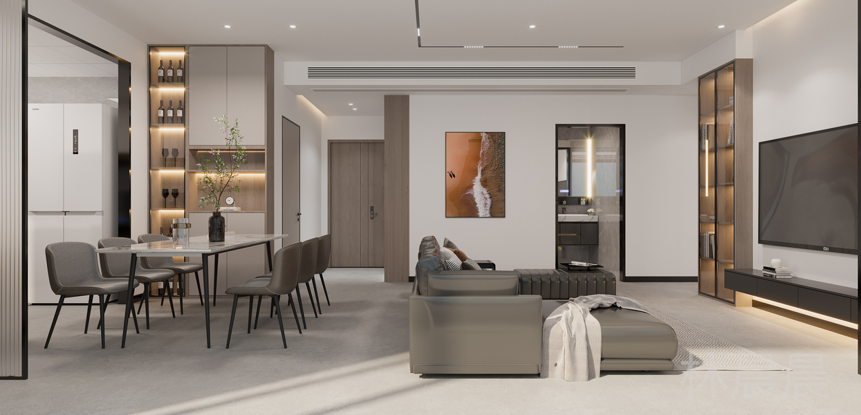 海南海口恒大美丽沙天宸(124平方现代简约四居室)