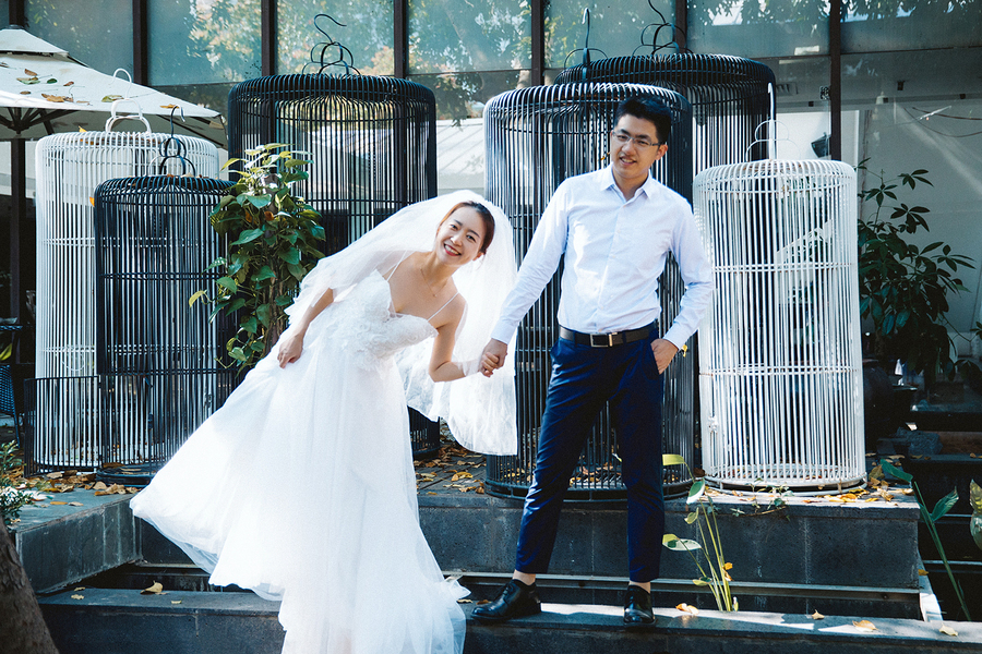 我就想这样牵着你的手不放开,森系草坪婚纱照