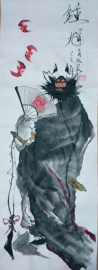 钟馗 国画人物 朱砂钟馗 张周新作 望各位雅正。