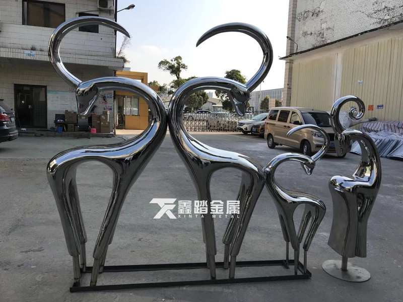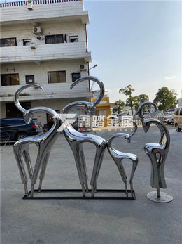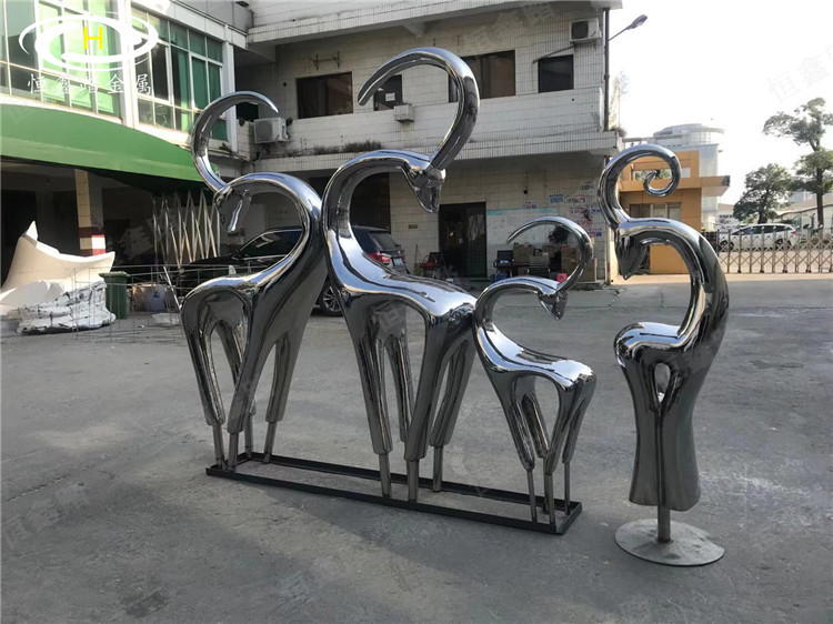房地产主入口景观雕塑小品 手工锻造抽象不锈钢鹿雕塑