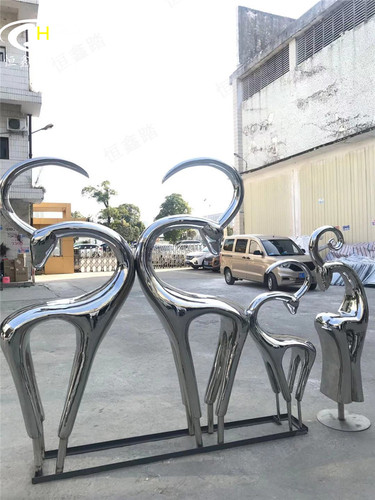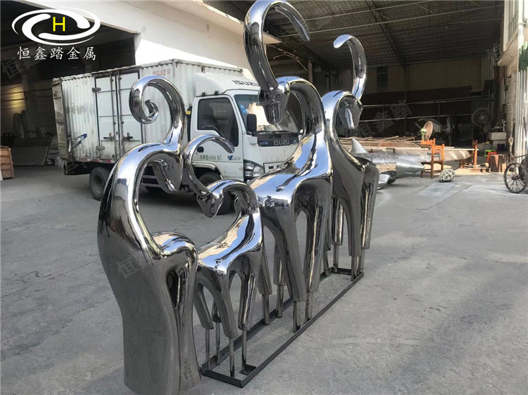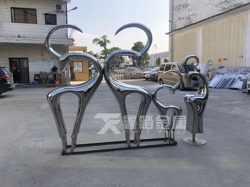 售楼中心亮光不锈钢抽象景观鹿雕塑 温馨一家
