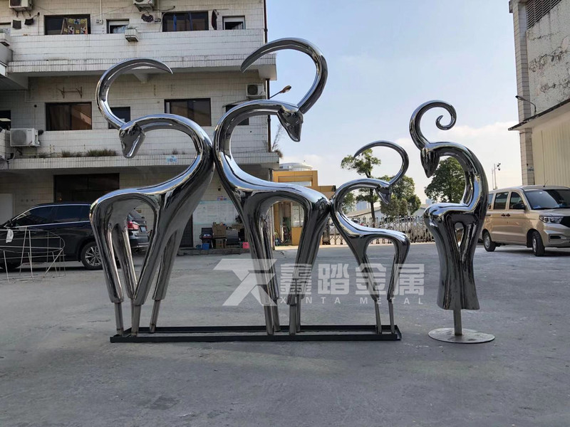 镜面不锈钢梅花鹿雕塑、以独具匠心的创意精妙绝伦工艺