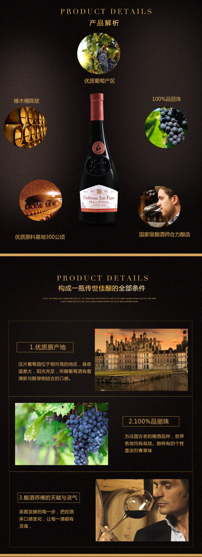 天猫淘宝电商红酒法国欧美高端奢华简约详情页