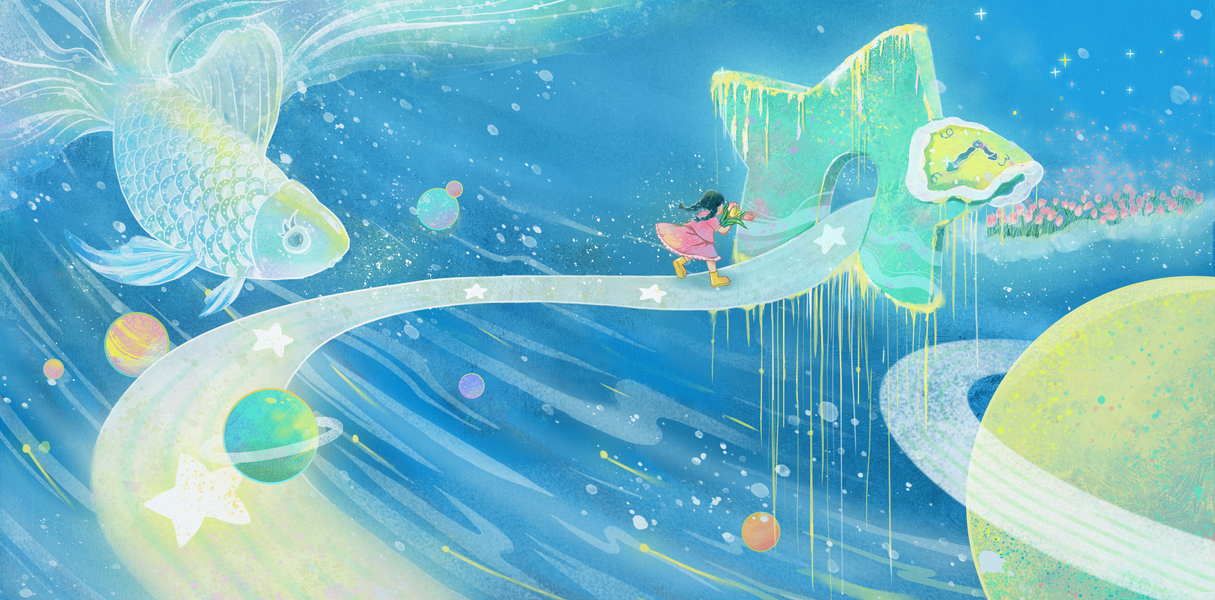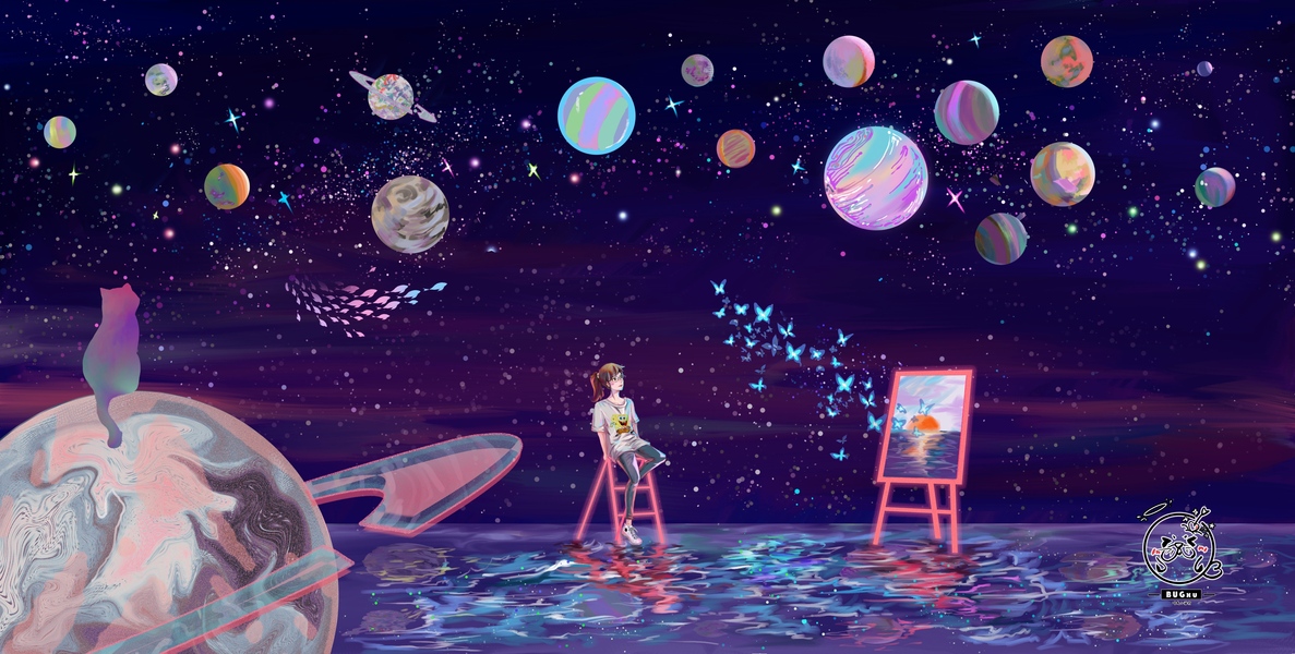 2022乐划锁屏插画大赏《梦曲:星空花田》