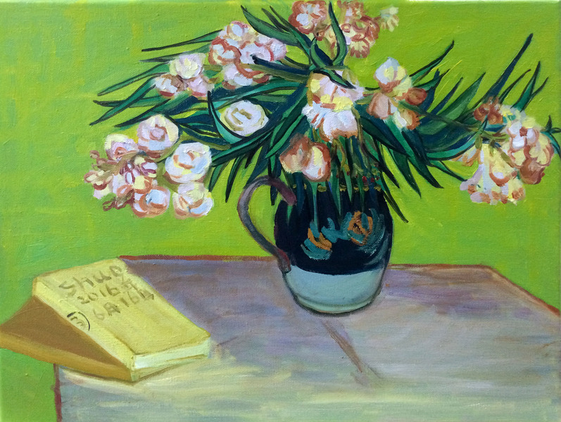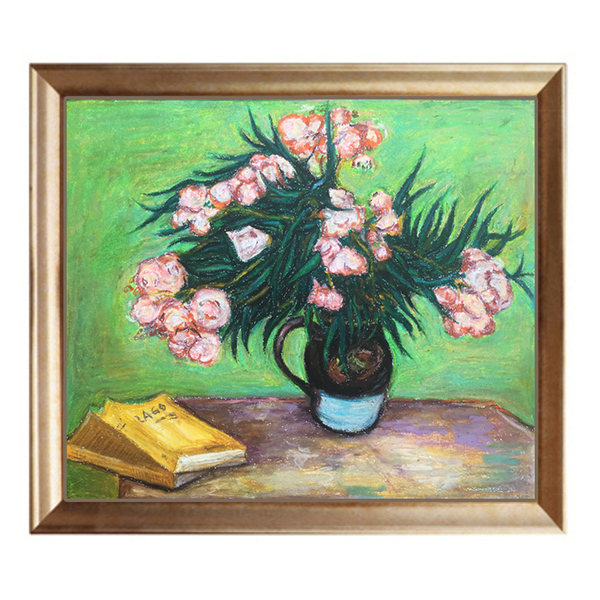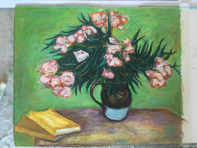 油画棒练习分享之梵高作品《马约里卡瓷瓶中的夹竹桃》