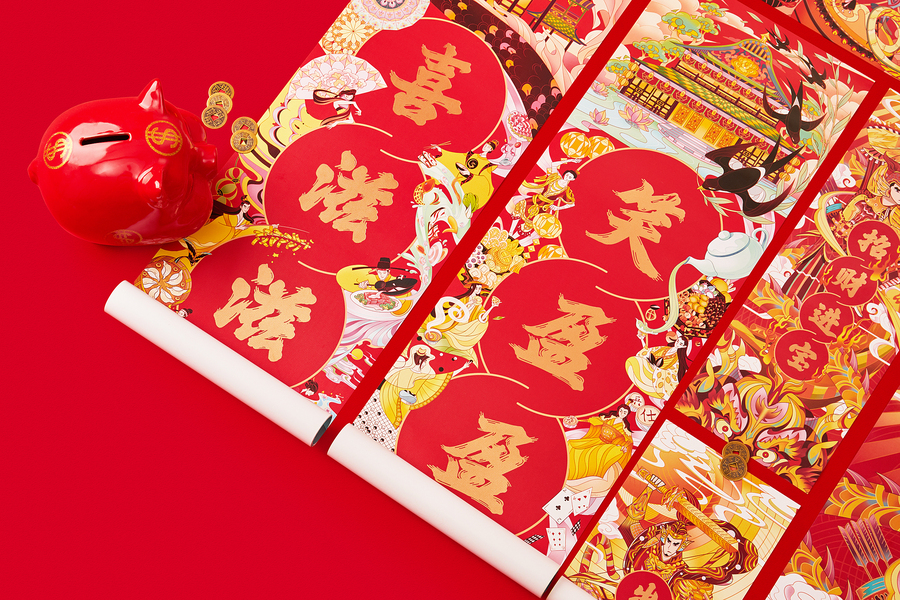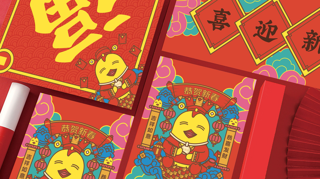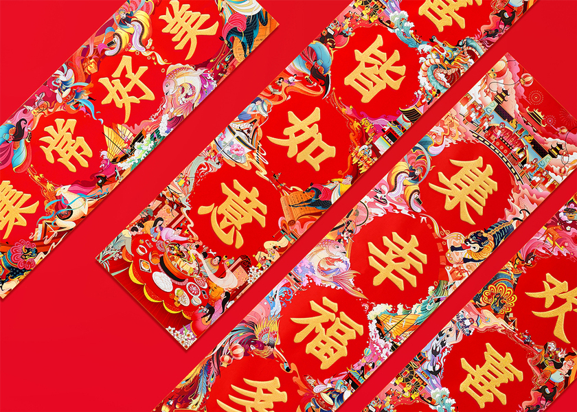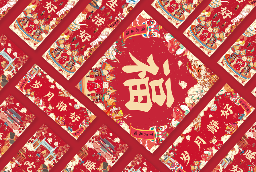【豆畈屯】2024龍华富贵新春插画年货设计