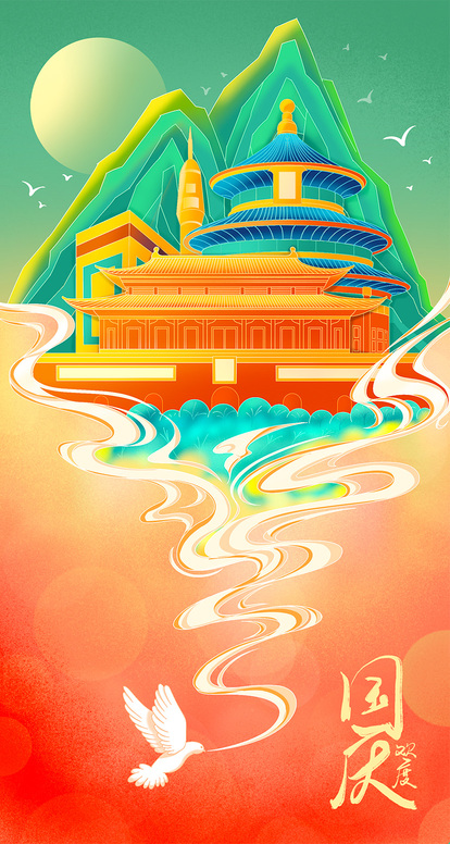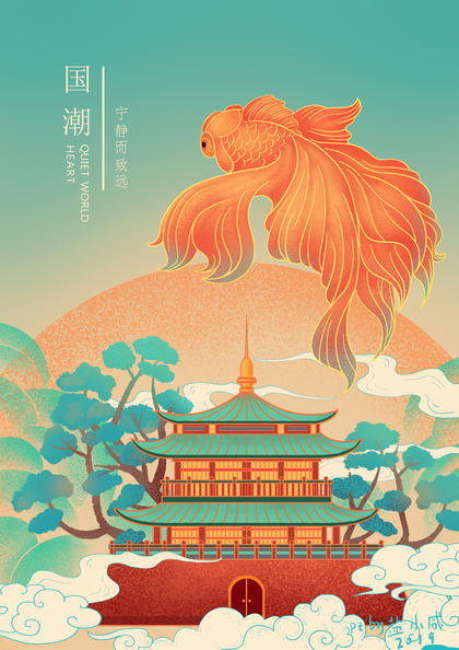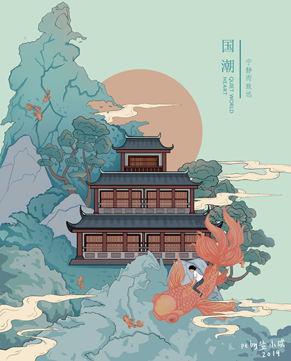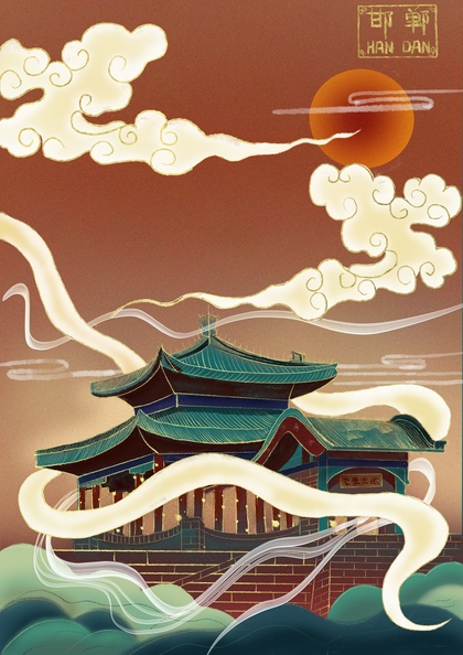 原创国潮建筑插画