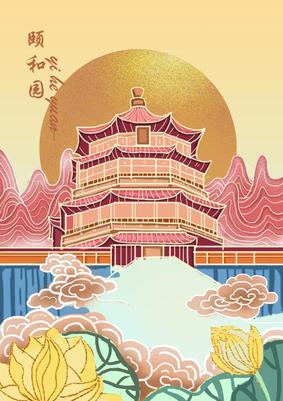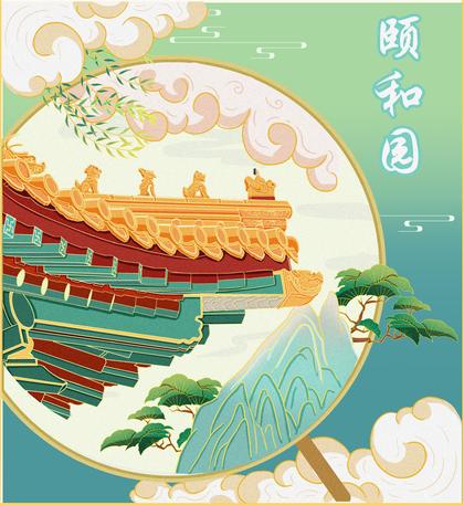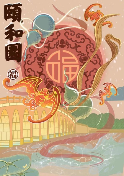 《福禄寿喜财》颐和园 手绘中国风 建筑 纹样 插画