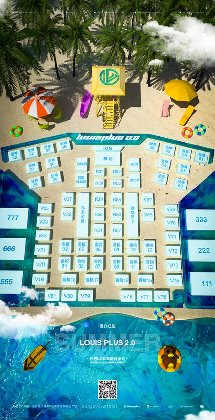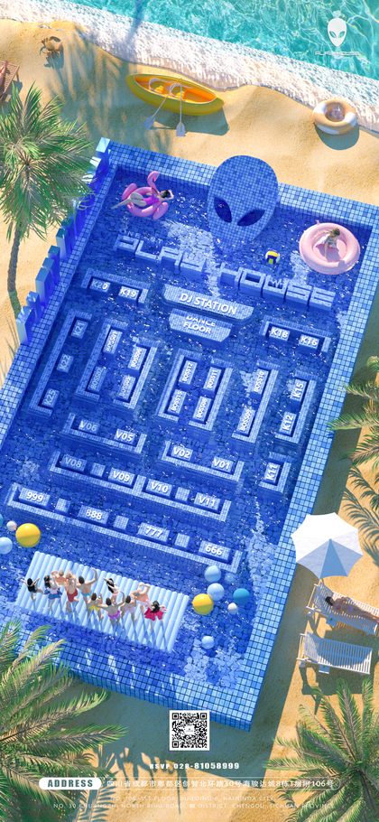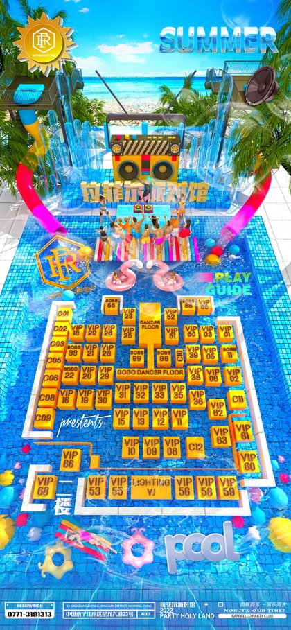 夏日泳池派对清凉酒吧座位图
