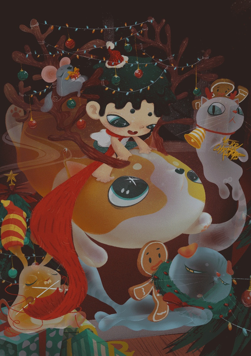 Mikomiko亲子餐厅新年除夕元宵节儿童插画