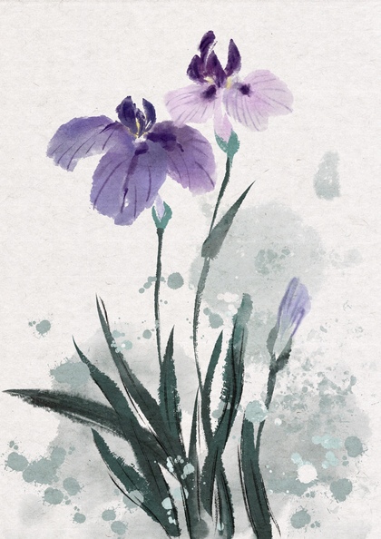 没骨 蓝紫色花卉 小品