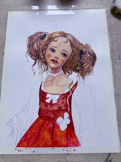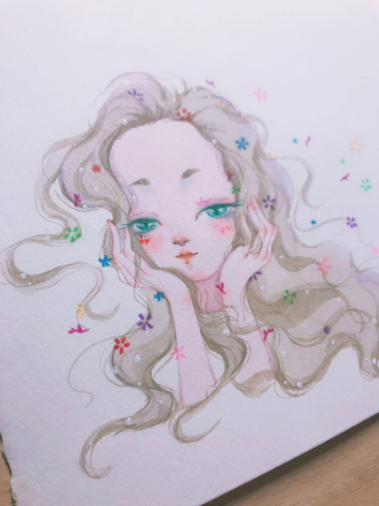 水彩手绘古风插画卡通国潮壁纸水彩教程敦煌飞天插画