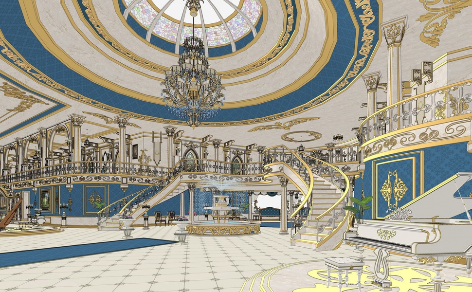 欧式音乐厅城堡SU模型下载