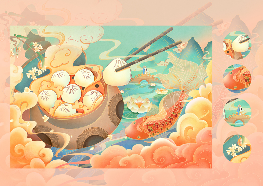 【国风插画】-潮汕老卤特产包装原创手绘插画系列(2)