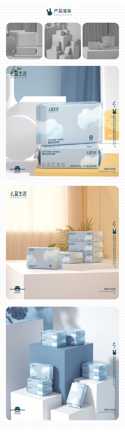 么蓝生活洗脸巾案例——包装设计、产品渲染