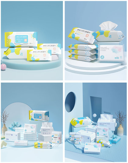 棉柔巾/卫生巾/湿巾/洗衣液等包装2020渲染合集