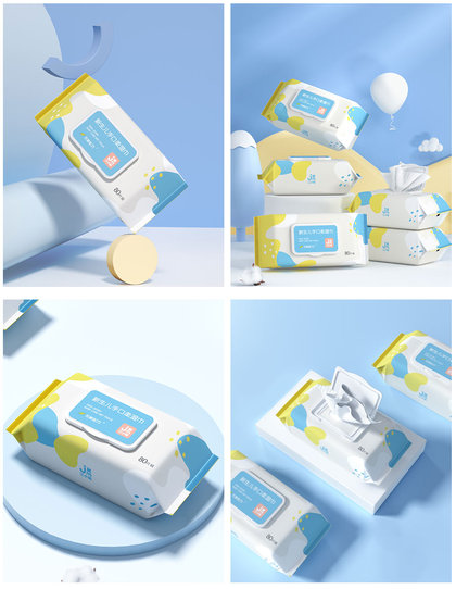 品牌湿巾产品 C4D视觉展示