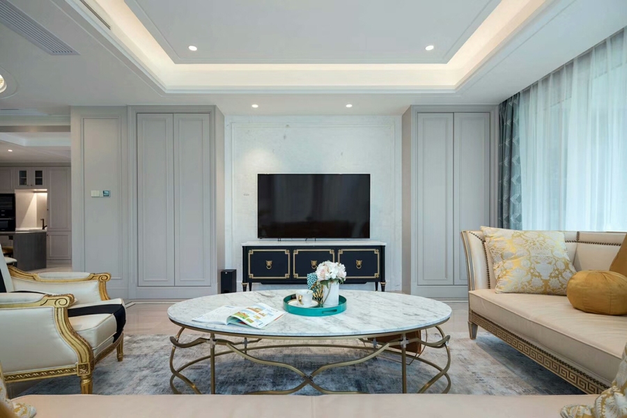 香港置地壹江郡装修,欧式轻奢风格设计,花园洋房装修