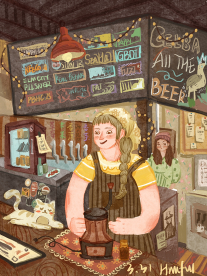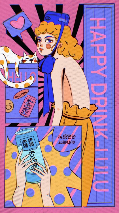 奶茶+宅文化+年轻人+宠物鸟 插画 酒店