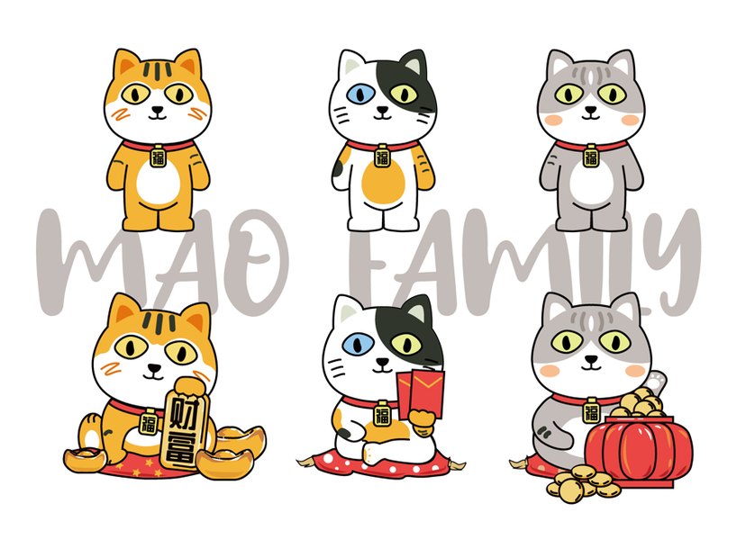 原创MAO FAMILY 3只猫咪IP形象设计+碗盘样机设计