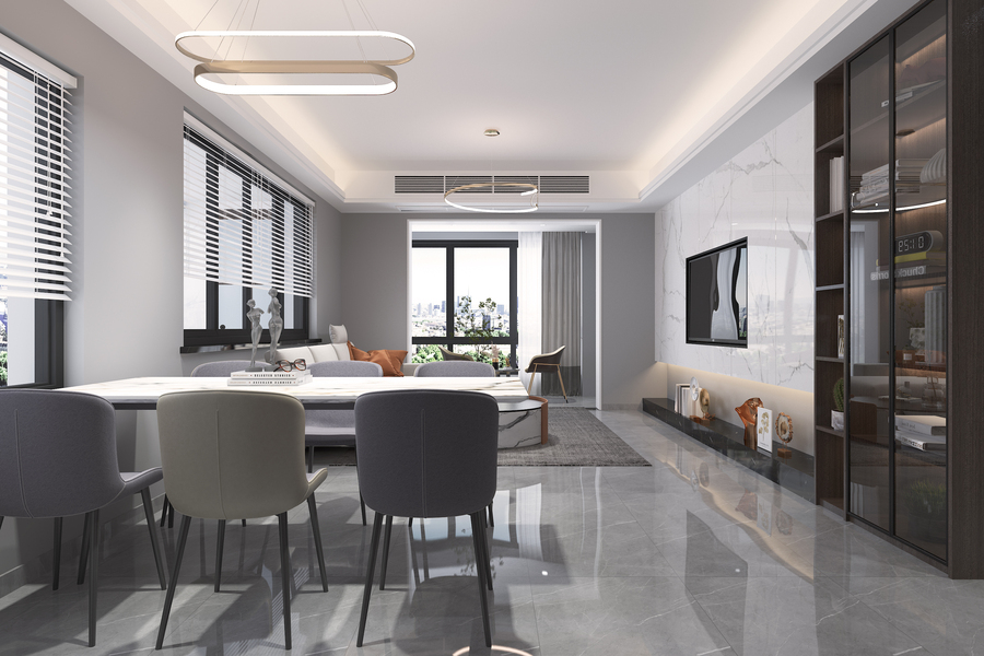 现代客厅餐厅开放书房