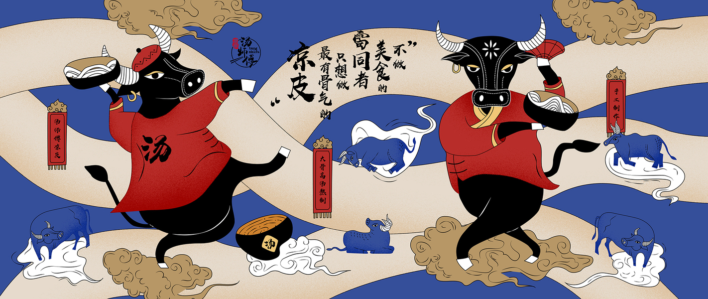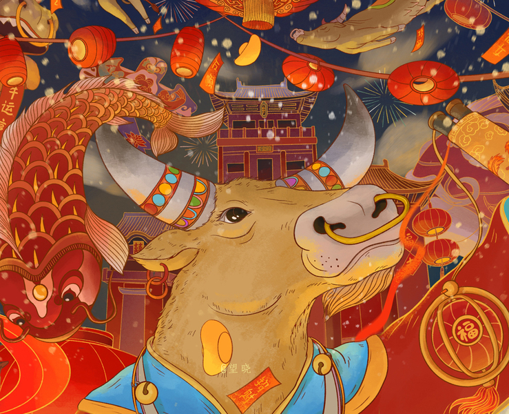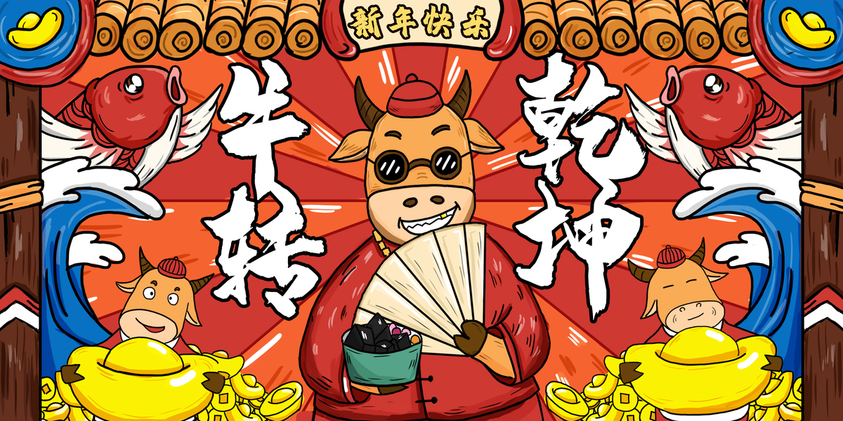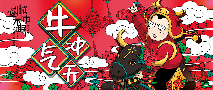 2021 牛年插画《牛气冲天》 —九牛拜年