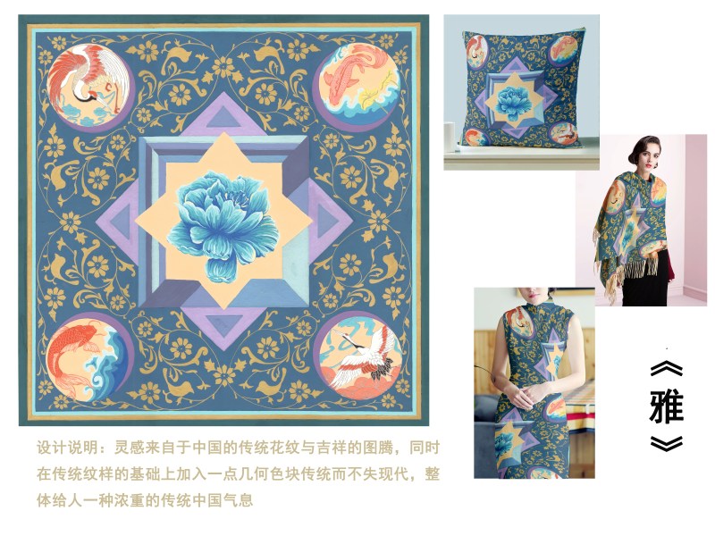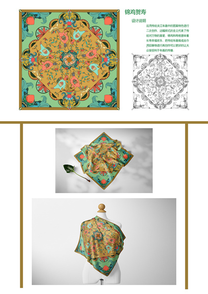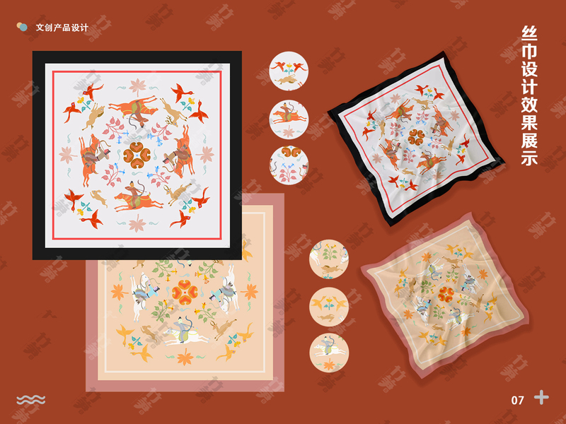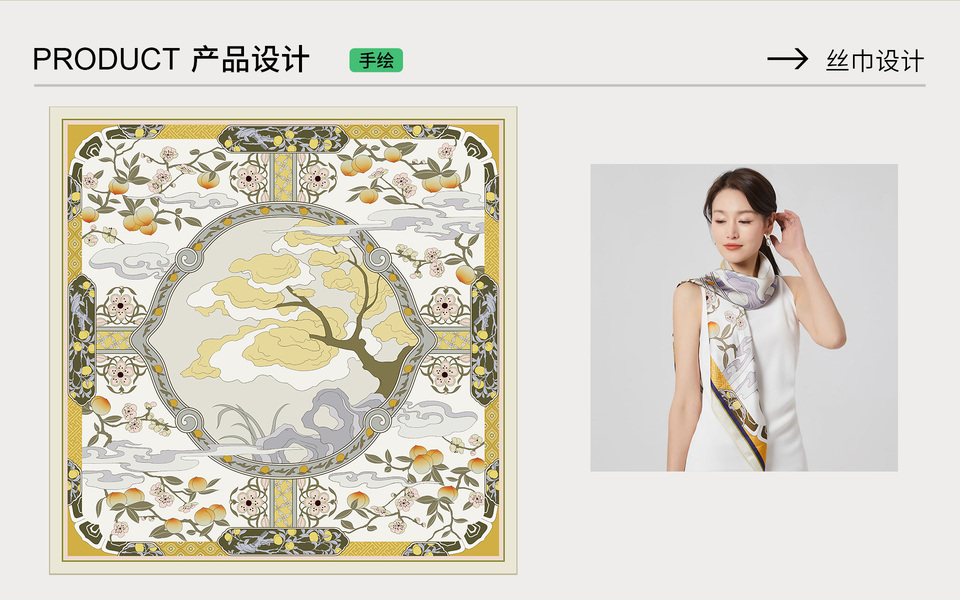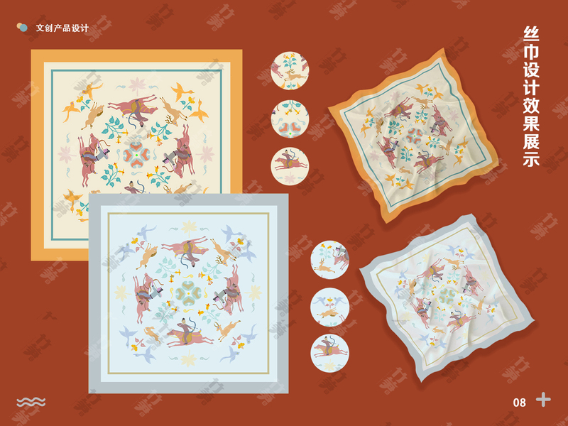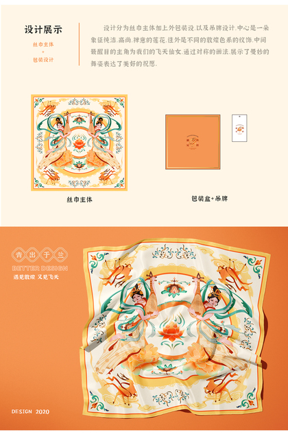 插画设计 | 敦煌系列丝巾设计 青绘设计