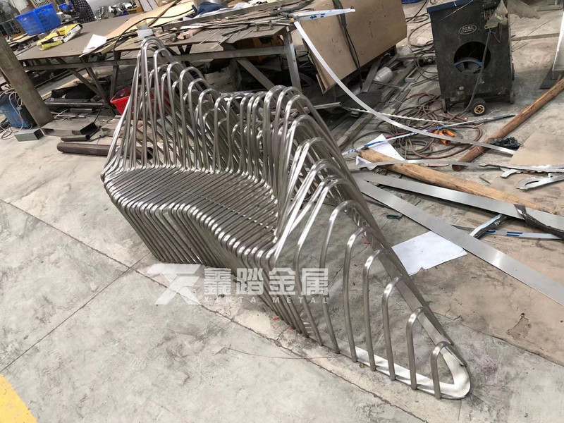 小区示范区景观不锈钢雕塑小品不锈钢圆管弯弧山形坐凳