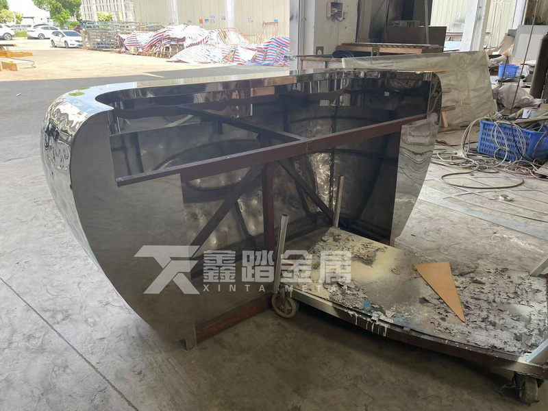 不锈钢镜面吧台、纯手工锻造曲面服务接待台造型效果