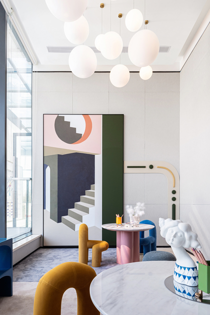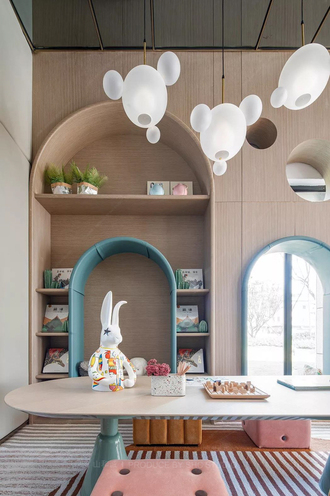 马卡龙样风格的板间。