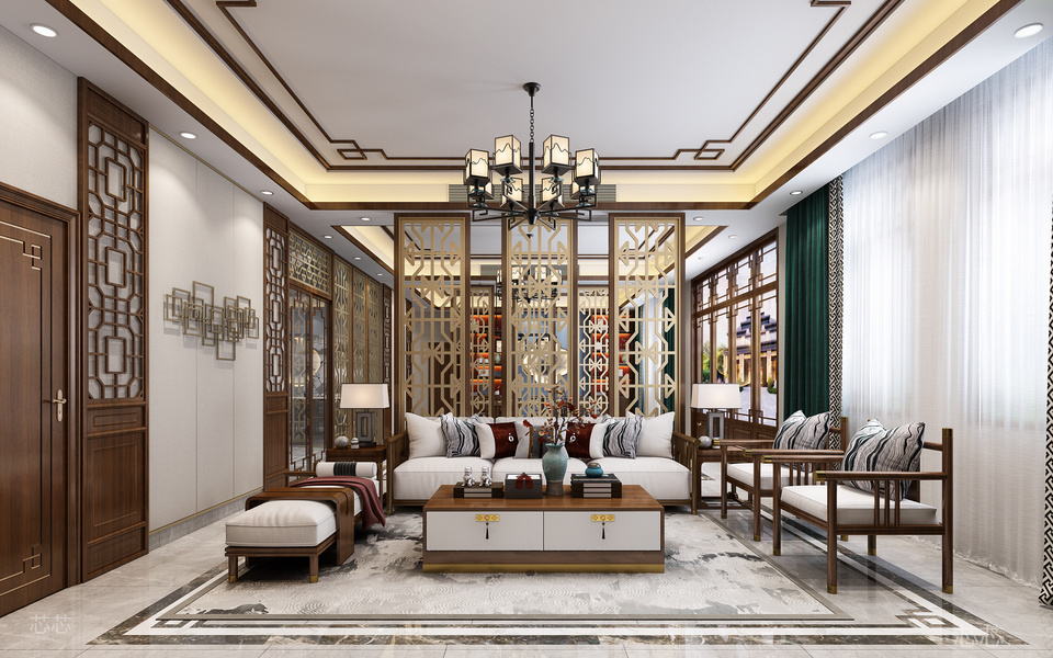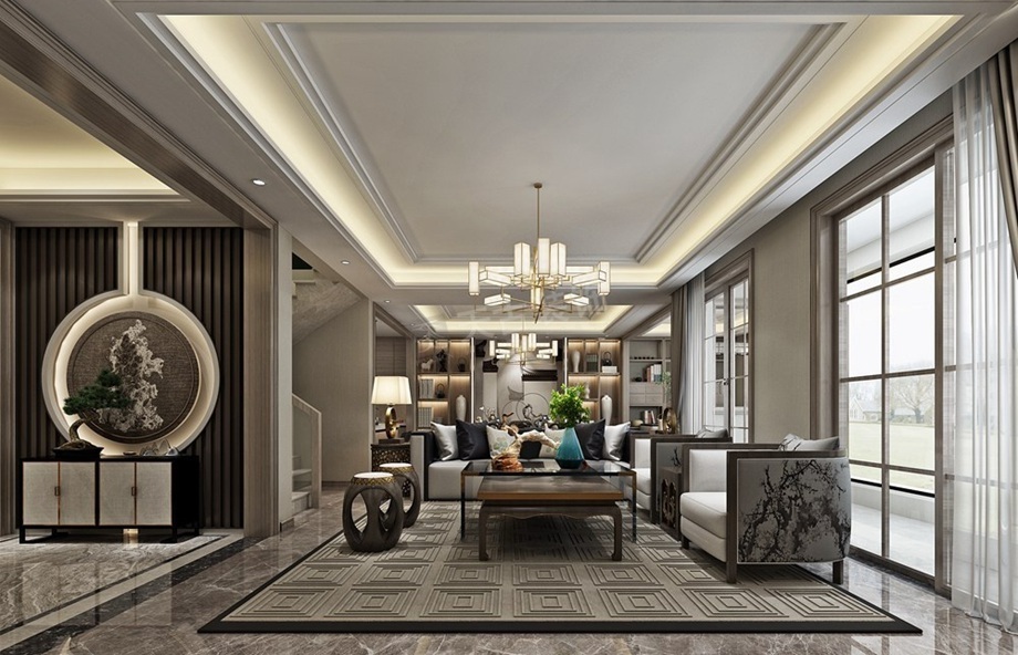 保利茵梦湖联排别墅装修,新中式风格设计,北碚天古装饰