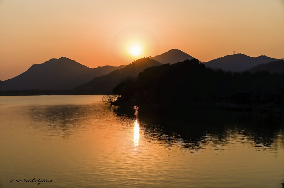 晚霞西湖