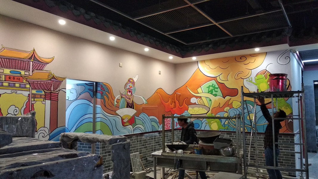 昆明三只蛙火锅墙体彩绘墙画☆昆明锦泰广告有限公司☆
