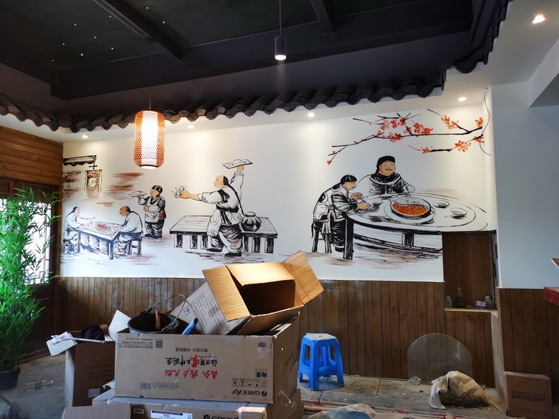 餐厅墙绘 餐饮店彩绘 店铺彩绘 墙体彩绘 墙面手绘