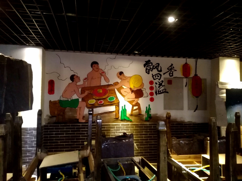 火锅店墙绘,餐饮墙绘,串串店墙绘,成都墙绘