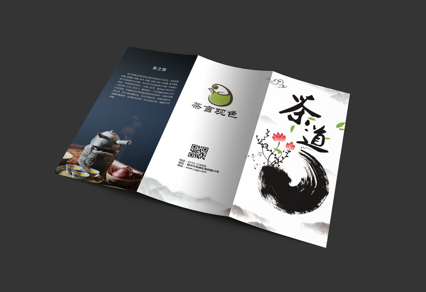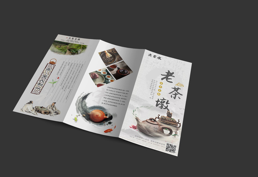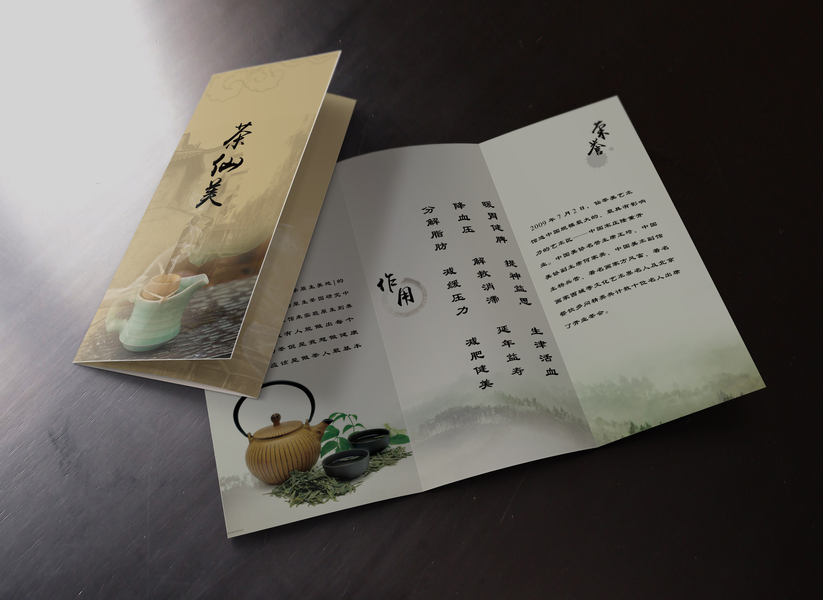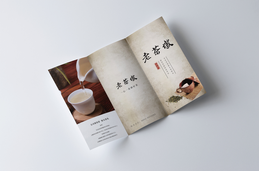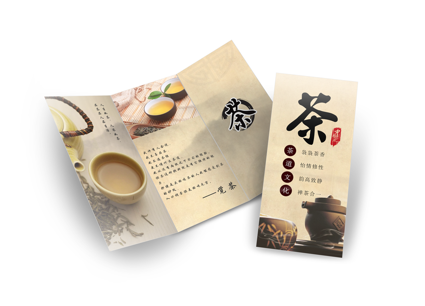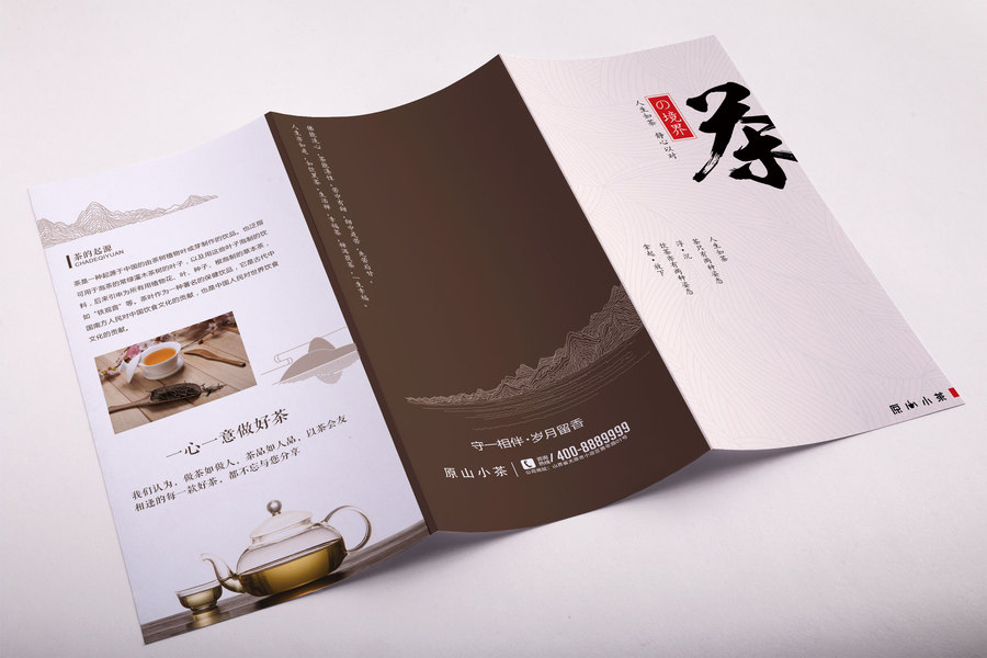 三折页茶叶喝茶茶馆古风诗词茶具杯山水