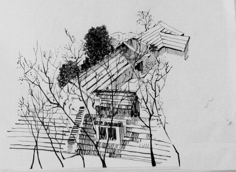 范炯钢笔画手绘村落绘画步骤