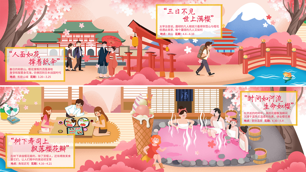 日本樱花节插画长图