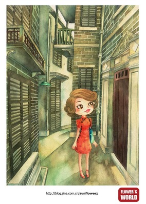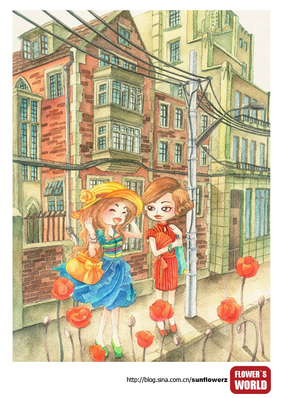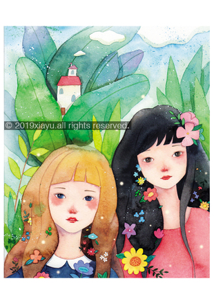 Flower girls-2 手绘水彩插画