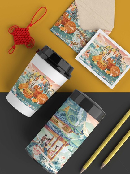 国潮风——中秋礼茶~红茶~春茶包装插画设计