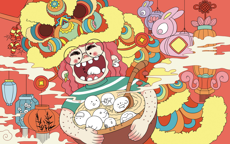 元宵节插画-原创手绘设计